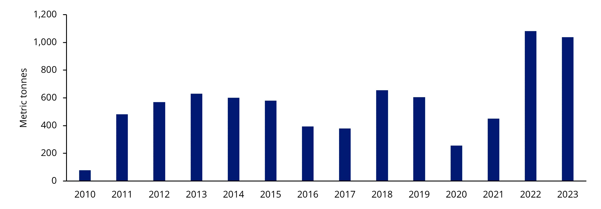 Source: Bloomberg, World Gold Council. Past performance is not indicative of future performance.