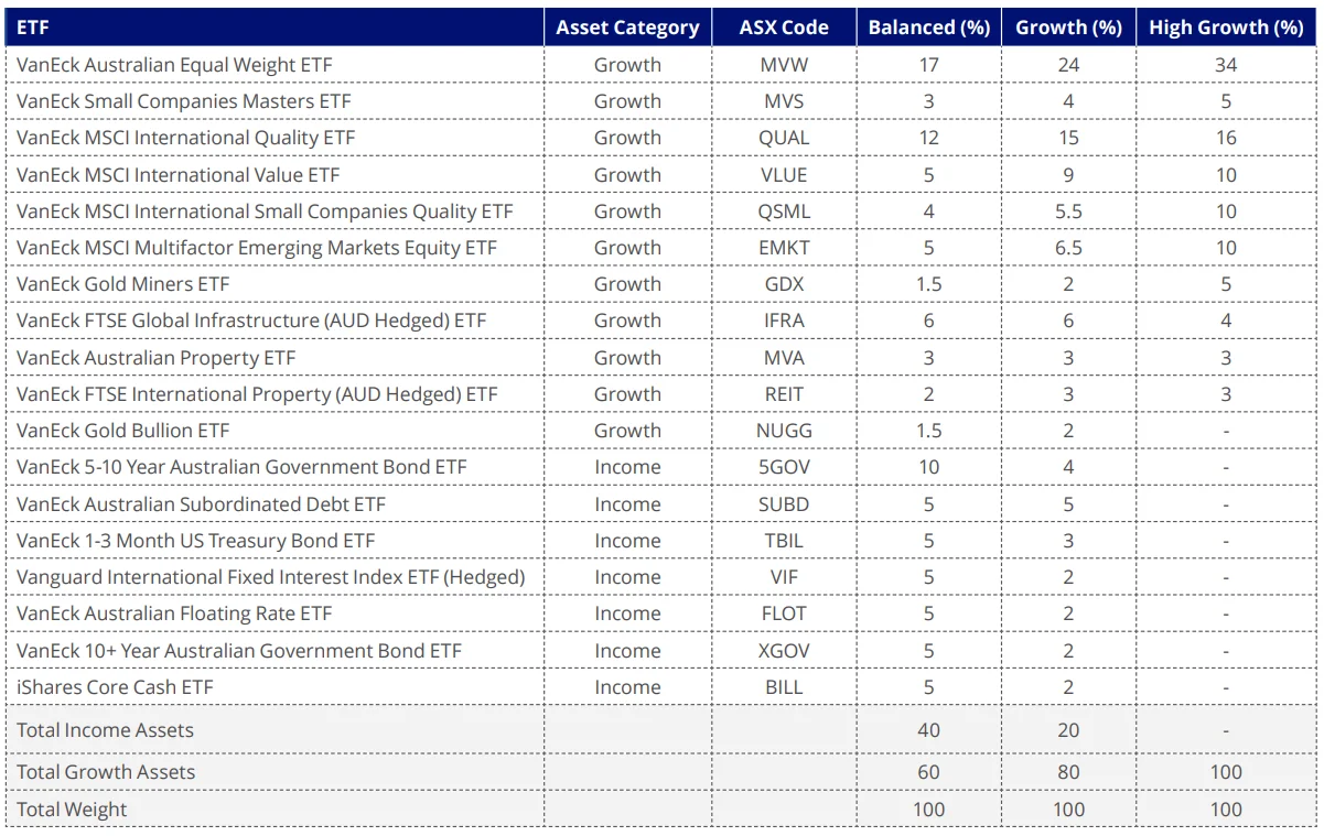 VanEck has created a series of notional model portfolios, which are split between growth and defensive assets across a range of ETFs that give exposure to many asset classes. Sometimes one ETF is not enough.