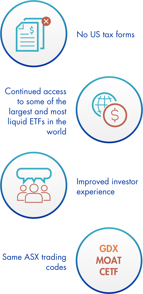 Depending on when transfer instructions were provided, CDIs will be exchanged for units in the new Australian fund at no cost on a 1:1 basis prior to the open of trading on ASX every 14 days from Friday 25th October until Friday 13th December 2019 based on the value of the respective US fund’s shares at the close of trading on NYSE of the preceding business day.
